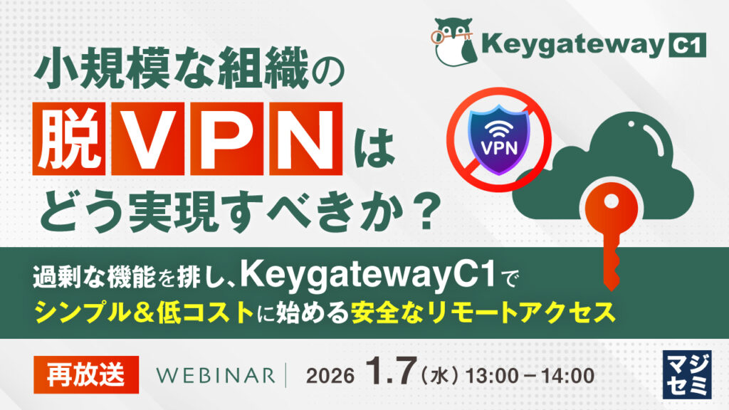 13:05~13:45 小規模な組織の「脱VPN」はどう実現すべきか? ~ 過剰な機能を排し、KeygatewayC1でシンプル&低コストに始める安全なリモートアクセス ~